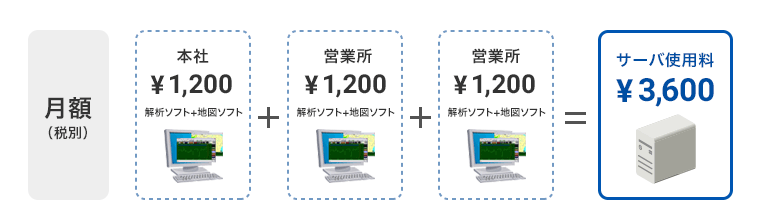 | ホスティングサーバ利用料金 | 1,200円 | 3ヵ所 | 3,600円 |