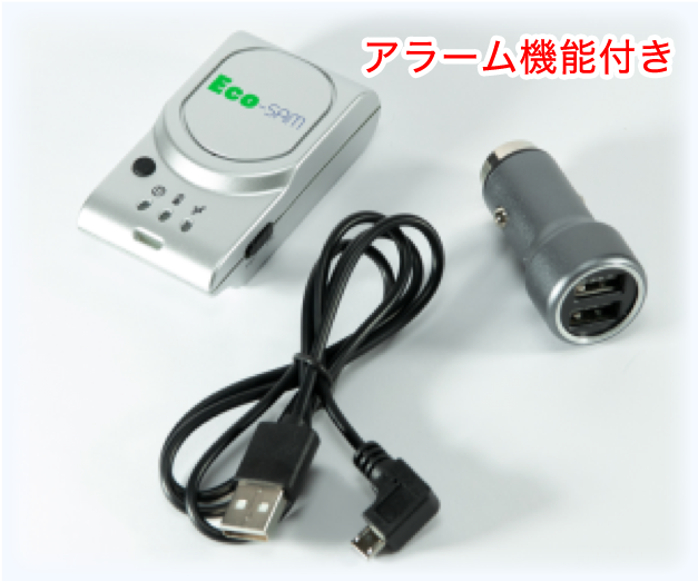 Eco-SAMは小型のGPS端末をシガーソケットに接続するだけ。スマホの車載充電器と同じような感覚で取り付けられるので、特殊な改造や取り付け作業は一切不要。工事費や維持費もかかりません。